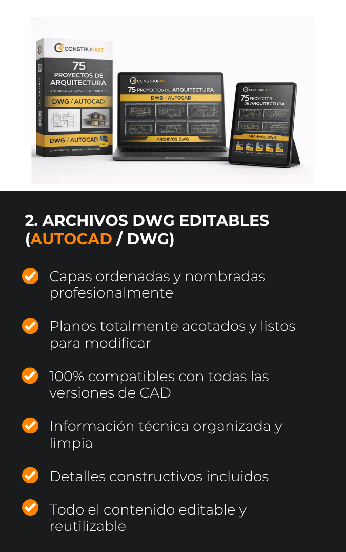 ¿Te frustran los archivos bloqueados o imposibles de modificar? Este pack incluye planos 100% editables, organizados por capas y medidas reales, para que trabajes o ajustes cada detalle de forma profesional.